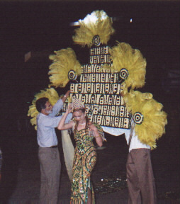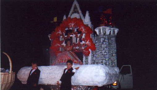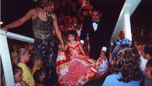 S.M. Carilyn Talia I, Reina Infantil 2001 Sale del Antiguo Hospital hacia el Complejo Deportivo |