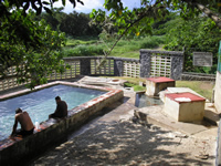 <sorry, still working on the translation> The spa was inaugurated in 1847 with the construction of a wooden guesthouse by Mr Andrés G. Luhring. Luego el Sr. José Usera compró el negocio y contruyó en 1857 un elegante edificio de mampostería y madera del país. El Hotel Baños de Coamo cerró sus puertas en 1959. El Parador del mismo nombre se inauguró en el mismo lugar en 1978, construido por la Compañía de Turismo de Puerto Rico. Del hotel original se conserva sólo el restaurante y la piscina de aguas termales. Del resto del hotel quedan algunas paredes que añaden un ambiente antiguo al Parador, incluyendo la antigua caja fuerte que ahora se encuentra en el area de la piscina de agua fría. La piscina antigua, localizada detrás del Parador, está abierta al público en general.