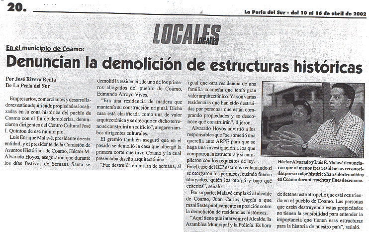 Archivo de documentos relacionados a la pérdida de estructuras en la zona histórica de Coamo |