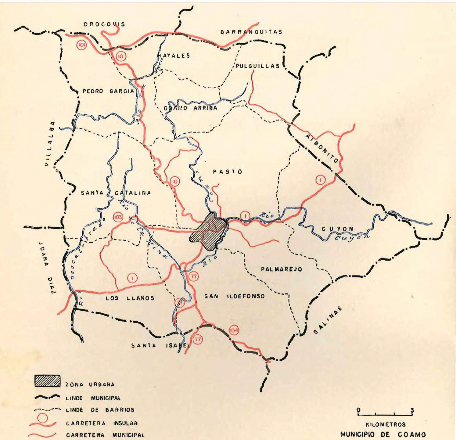 Junta de Planificacion, Officina del Gobernador, Estado Libre Associado de Puerto Rico (1953) Municipio de Coamo: Memoria Suplementaria al Mapa de Límites del Municipio y sus Barrios. Memoria Núm. 33. https://archivonacional.com/PL/1/1/5491