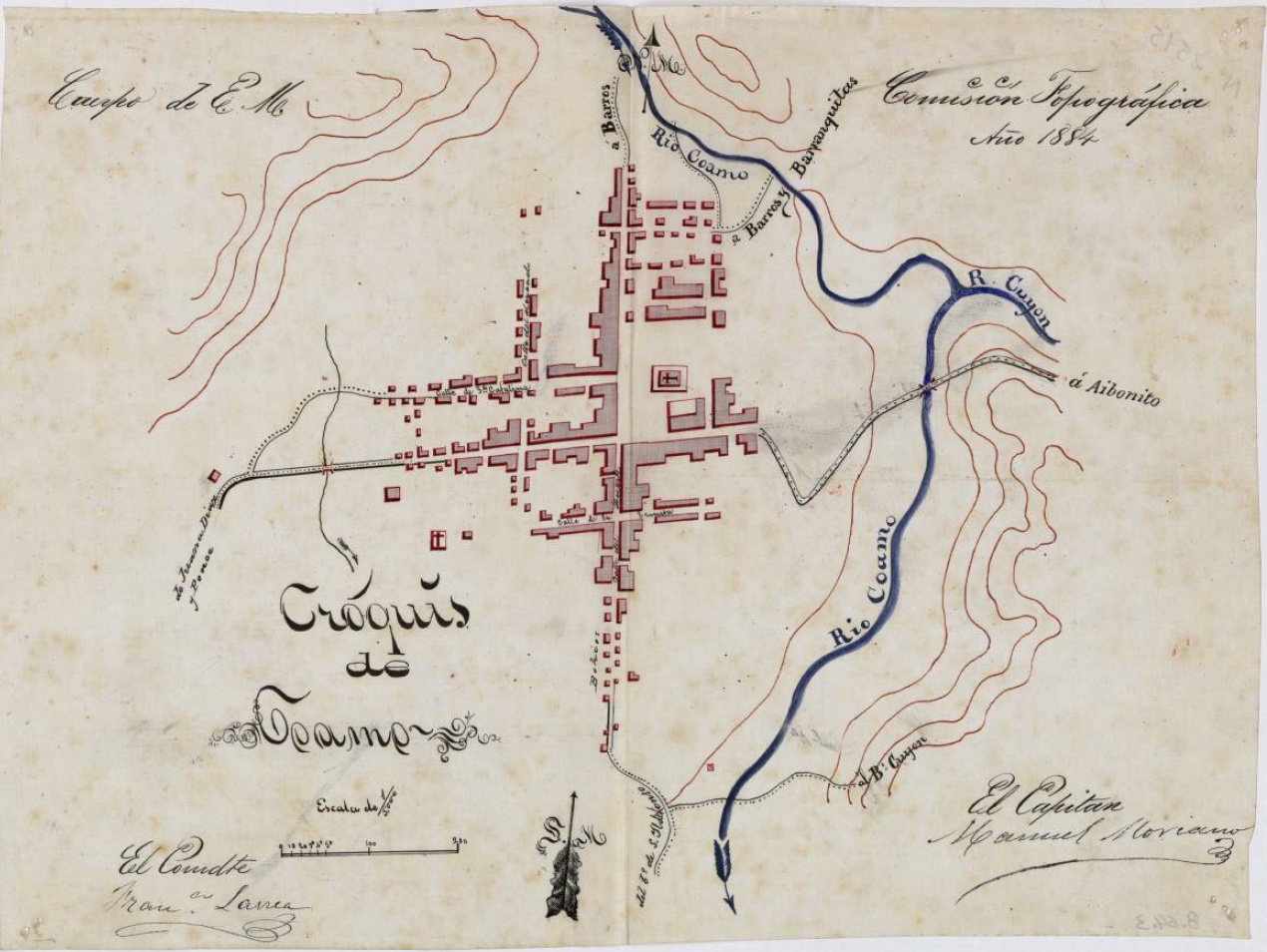 Centro Geográfico del Ejército (1884) Croquis y datos estadísticos del pueblo de Coamo. https://archivonacional.com/PL/1/1/1092